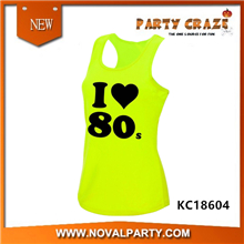 I love 80s ladies sports vest party top neon yellow shirt