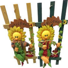 Easter sunflowers scarecrow with wooden fence